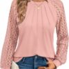 - Stylish and Comfortable Design: This lace sleeve knit top combines elegance with comfort. The soft fabric blend of 60% polyester, 35% rayon, and 5% spandex ensures a comfortable fit with a touch of stretch for added flexibility.