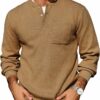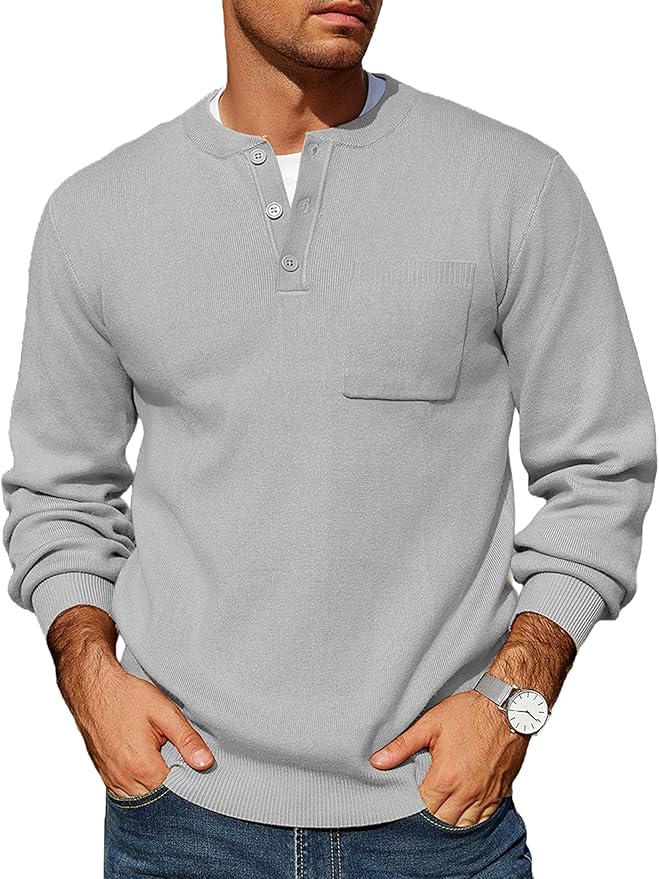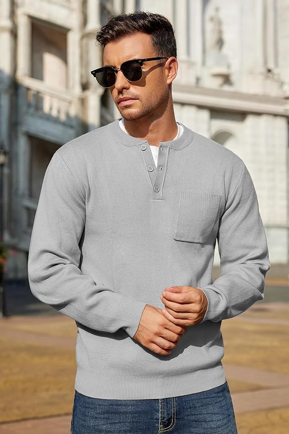 - Men’s knit sweater is made of 100% Polyester, soft, light, breathable, and feels nice against your skin. The thickness is just right for fall and early winter and it looks stylish while feeling warm.