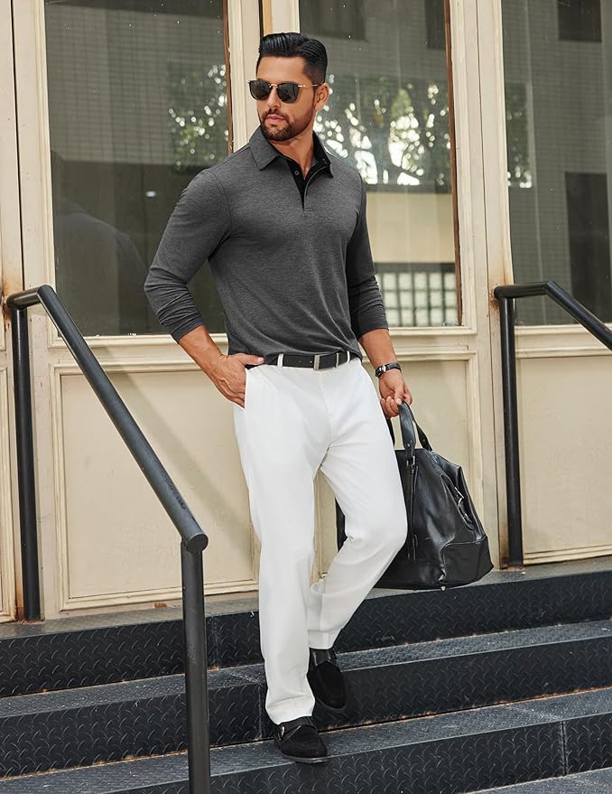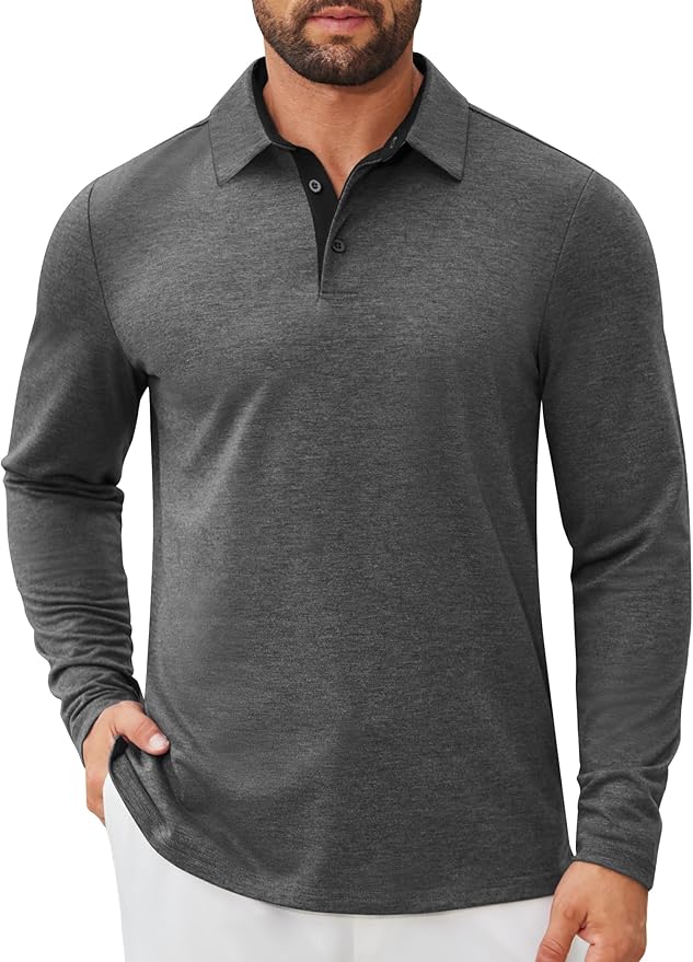 - This long-sleeved polo shirt is made from a high-quality fabric, ultra-soft, breathable and won’t shrink. This button-collared polo shirt will enhance your wearing experience with its comfort.