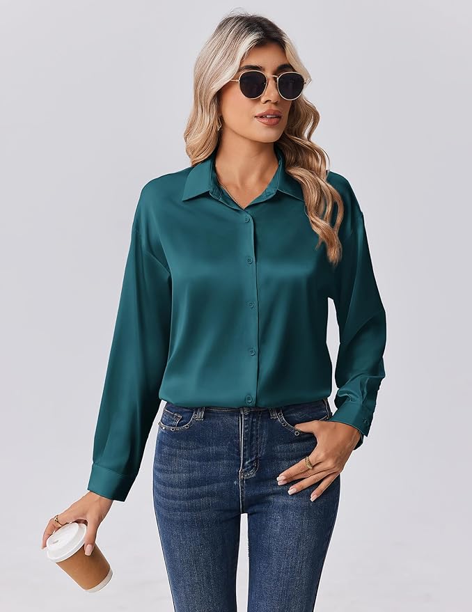 - Timeless Versatile Design: Features a classic turn down collar, button-down front, and sleek long sleeves, perfect for layering under blazers or wearing solo